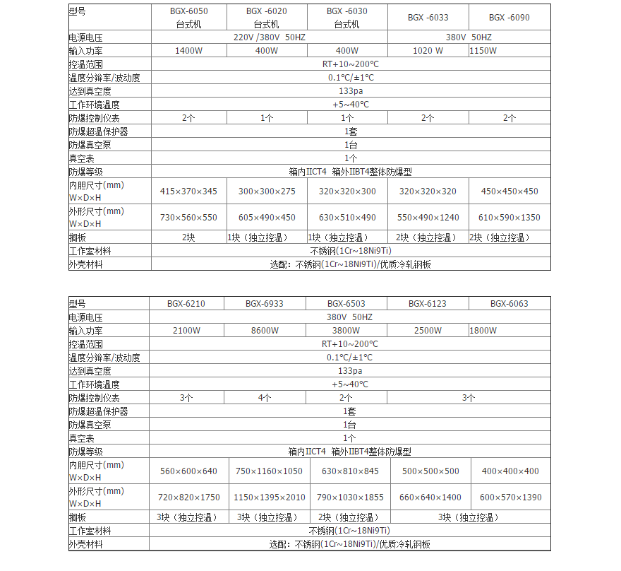 防爆真空干燥箱技術(shù)參數(shù):